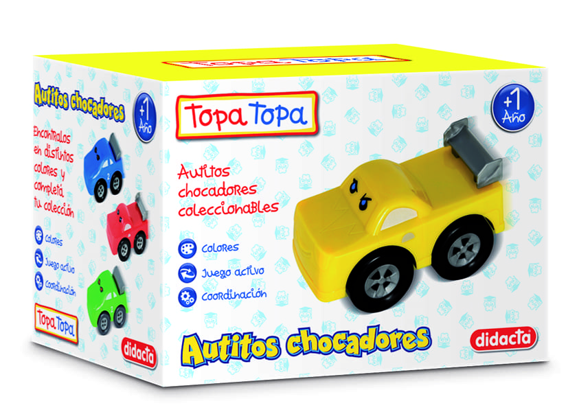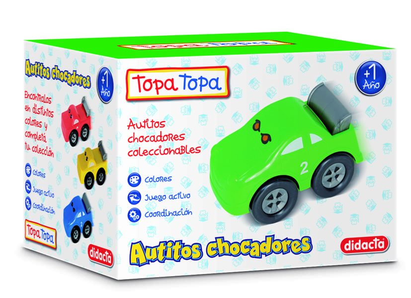 ¡Con la línea Topa Topa jugá y aprendé! Autitos chocadores coleccionables, que estimulan el juego activo, la coordinación y motricidad fina, además de la familiarización con los colores. Encontralos en distintos colores (rojo, azul, verde, amarillo) y completá tu colección.