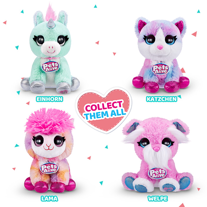 4 nuevas mascotas adorables para coleccionar: llama, unicornio, perrito y gatito.