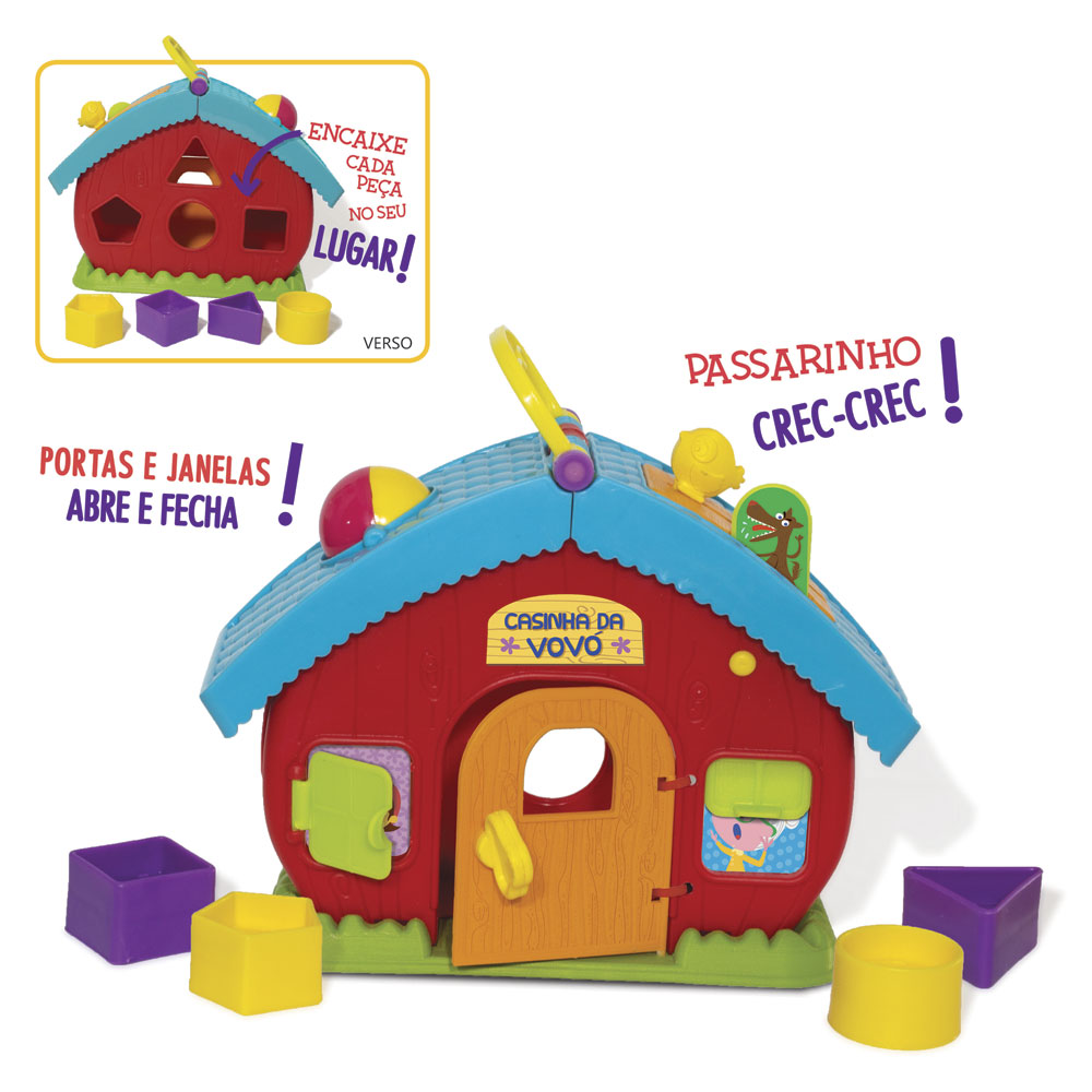 La casa de la abuela con puerta y llave, formas a medida, techo que abre y cierra la ventana con sorpresa. Mira al lobo feroz.