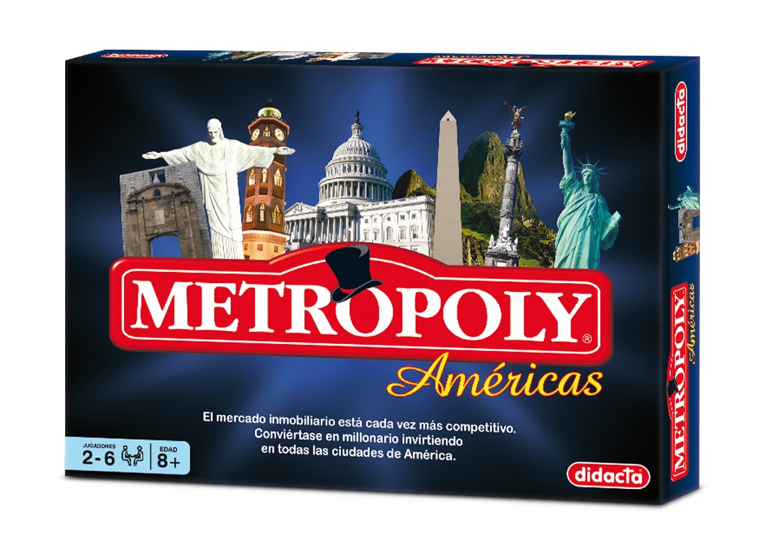 El mercado inmobiliario está cada vez más competitivo. Conviértase en millonario invirtiendo en todas las ciudades de América. Uno de los juegos más divertidos que se han creado para toda la familia. Con él, los más pequeños aprenderán a manejar el dinero y los jóvenes sus finanzas. Junto a los adultos todos se divertirán y disfrutarán de momentos entretenidos. METROPOLY AMÉRICAS, el juego de los negocios inmobiliarios.